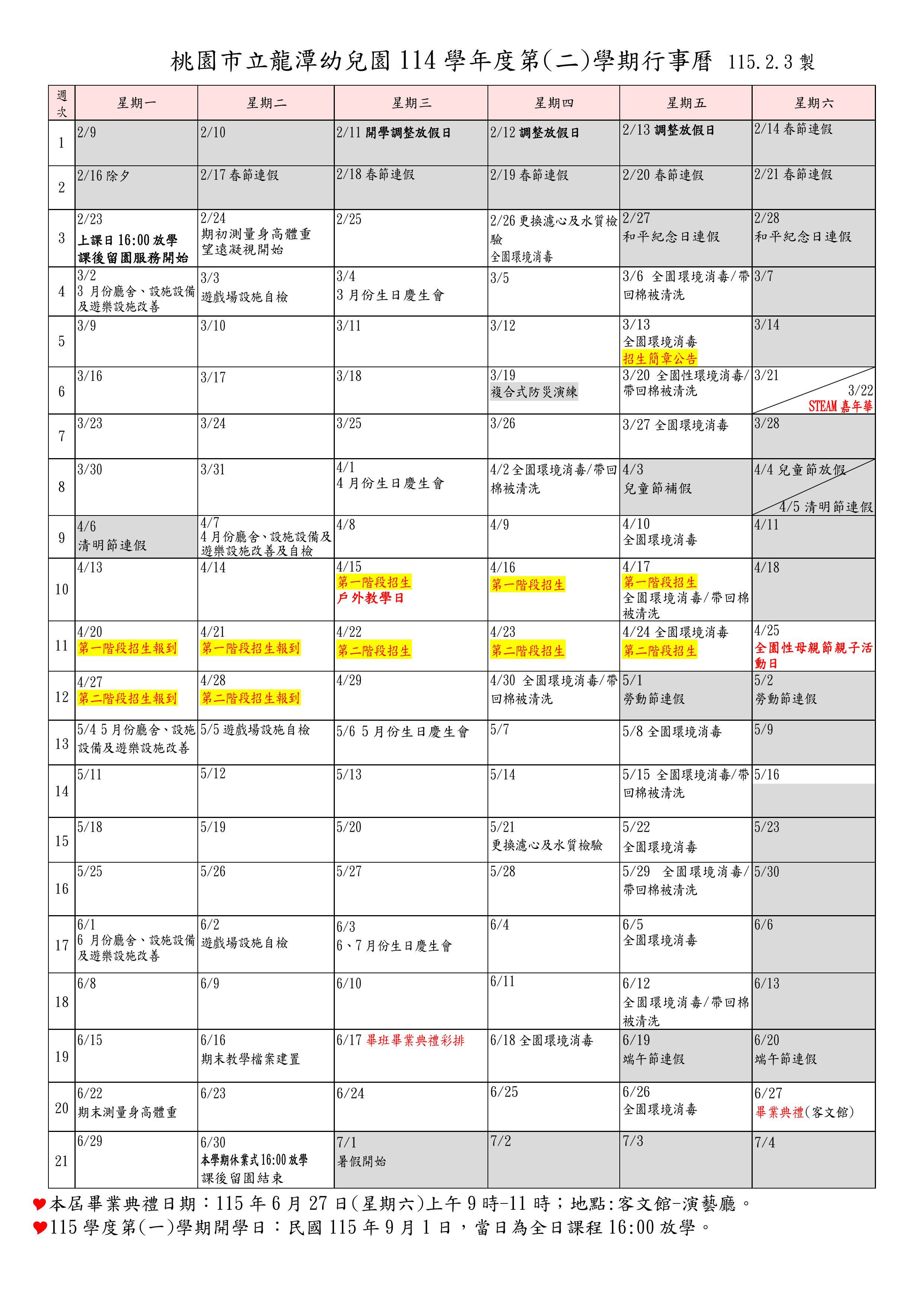 行事曆/幼兒作息表