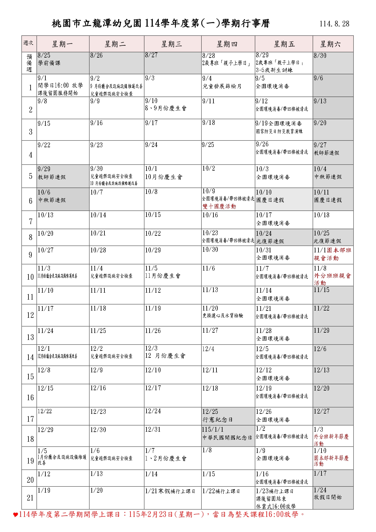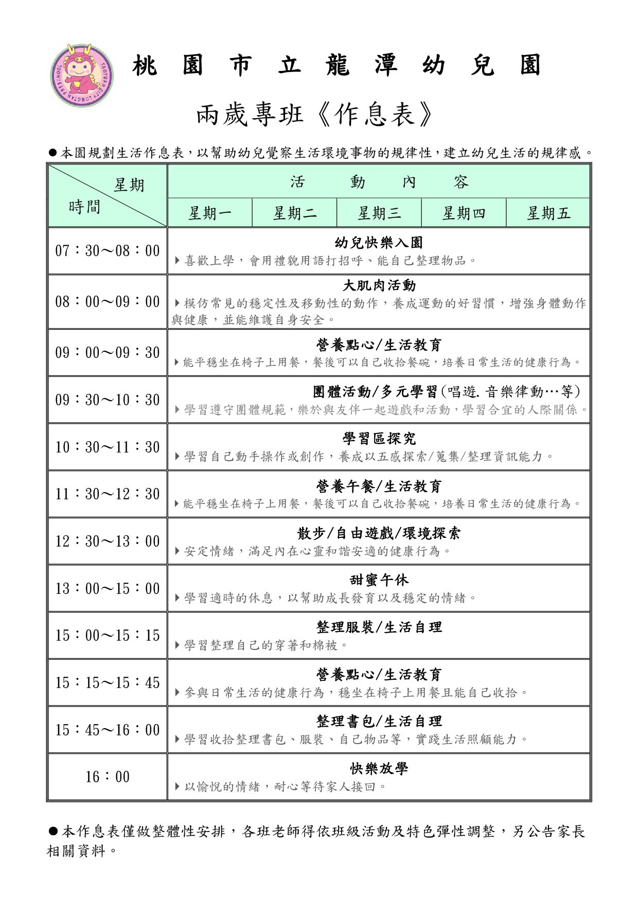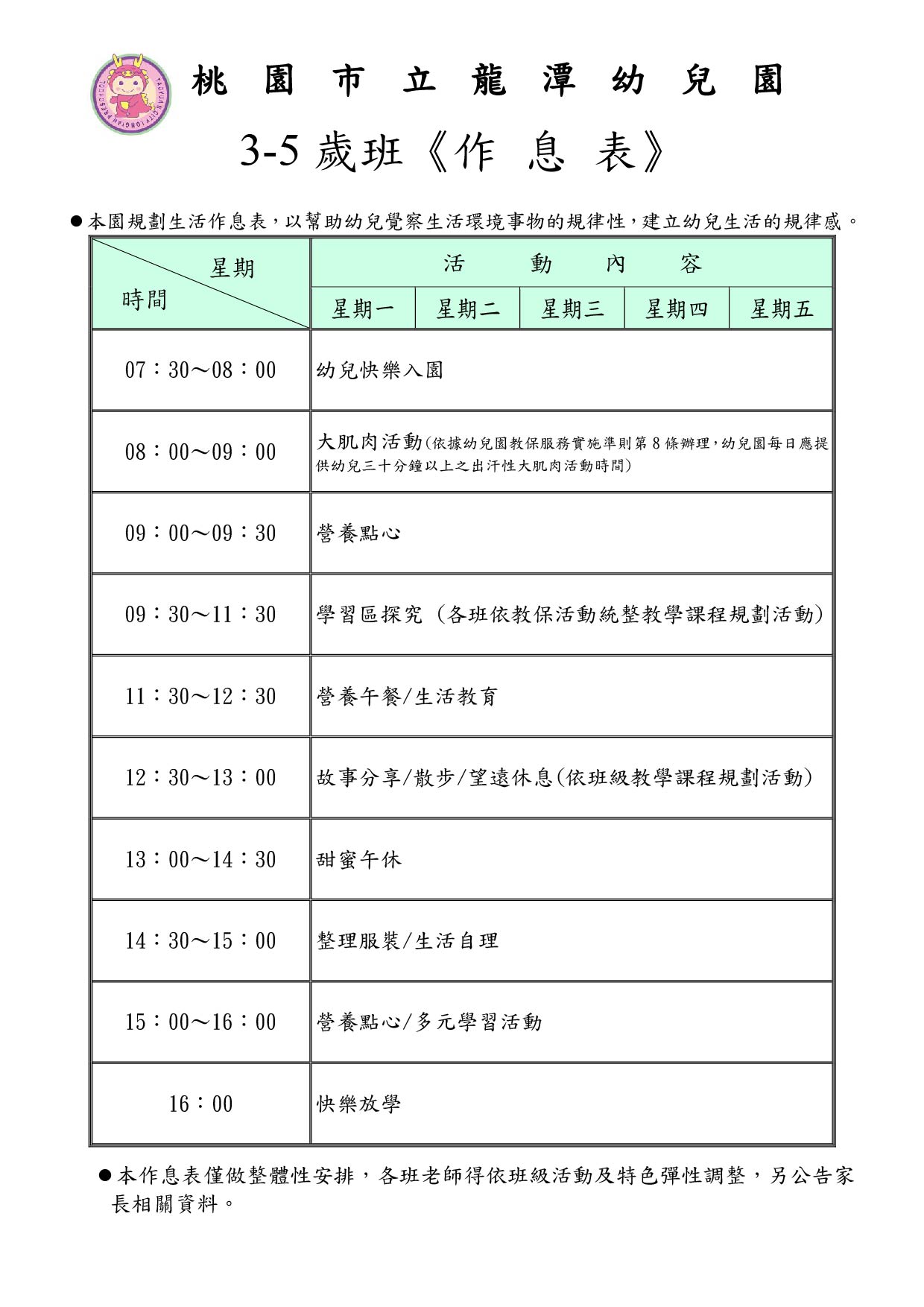 行事曆/幼兒作息表